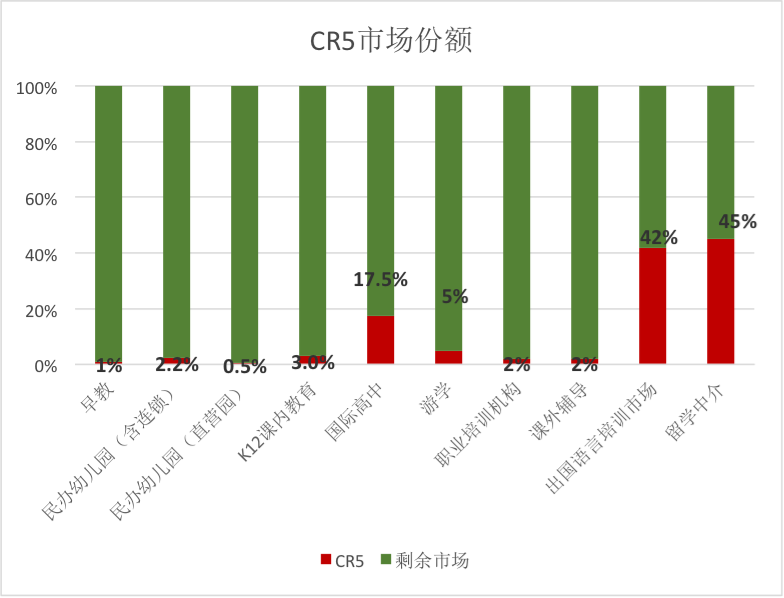 用CR5來(lái)衡量市場(chǎng)集中度。留學(xué)中介,出國(guó)語(yǔ)言培訓(xùn),是市場(chǎng)高度集中化的市場(chǎng)。
