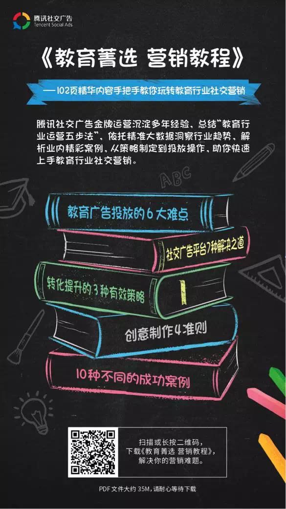 近日,騰訊社交廣告發(fā)布了教育行業(yè)營(yíng)銷手冊(cè)——《教育菁選,營(yíng)銷教程》以幫助教育行業(yè)品牌主應(yīng)對(duì)“流量紅海”的局面,解決“尋找用戶難”、“機(jī)會(huì)流失快”“客戶復(fù)購率低”等營(yíng)銷核心痛點(diǎn)。