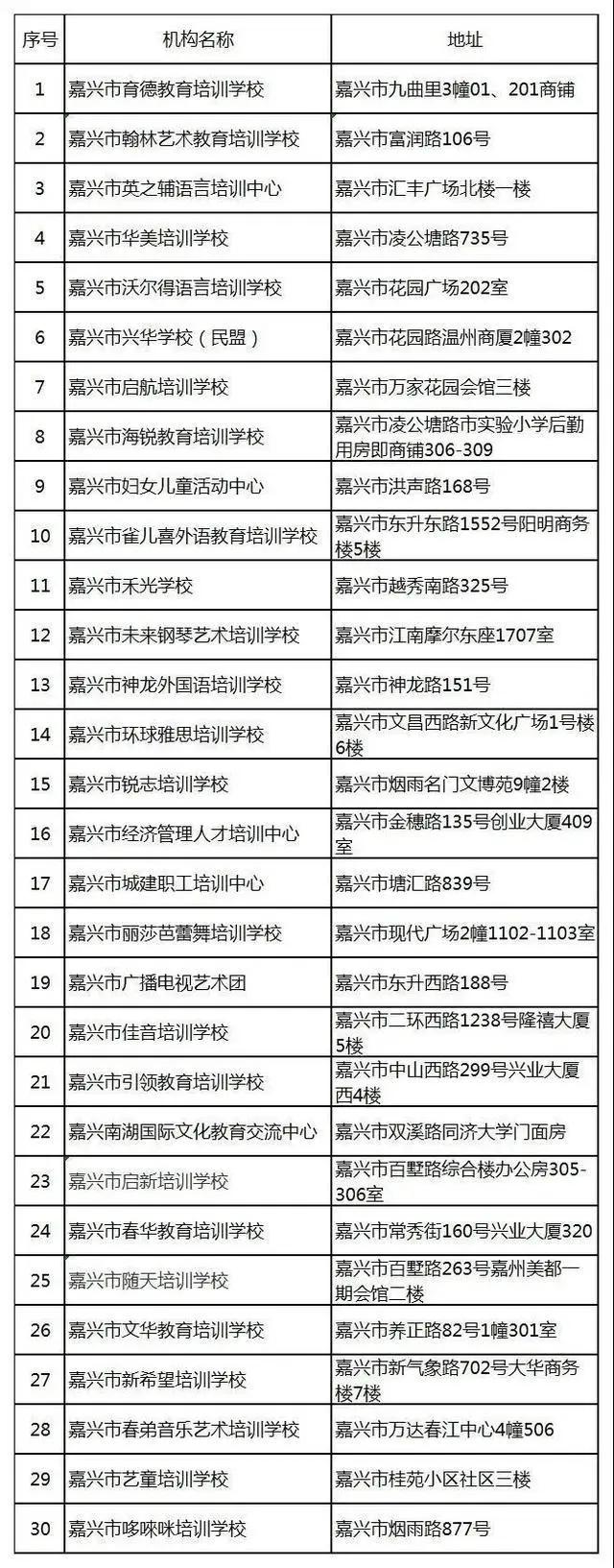 多知網5月22日消息,近日,嘉興市教育局審批通過了部分校外培訓機構的申請,并公示了第一批復課的30家機構名單。