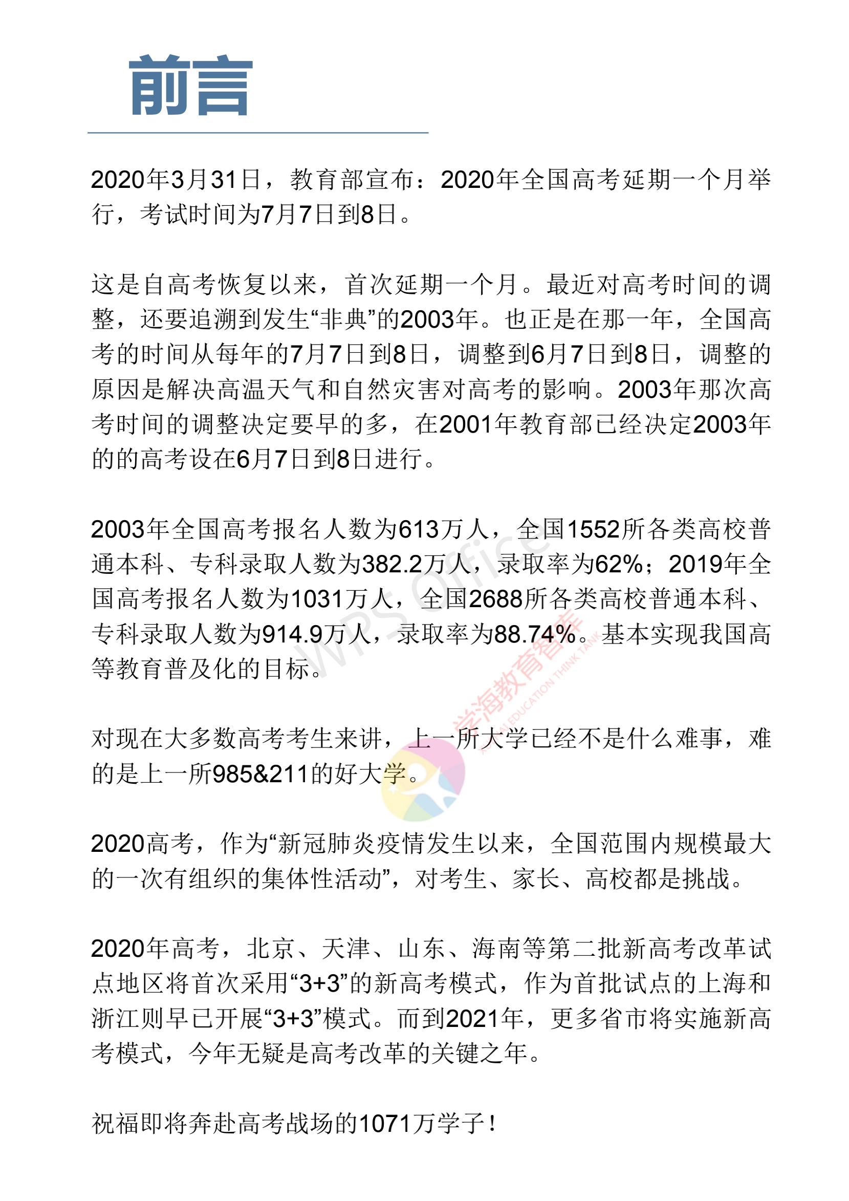 本文系學(xué)海教育智庫(kù)發(fā)布的一份名為《2020新冠肺炎疫情下的中國(guó)高考研究藍(lán)皮書》。