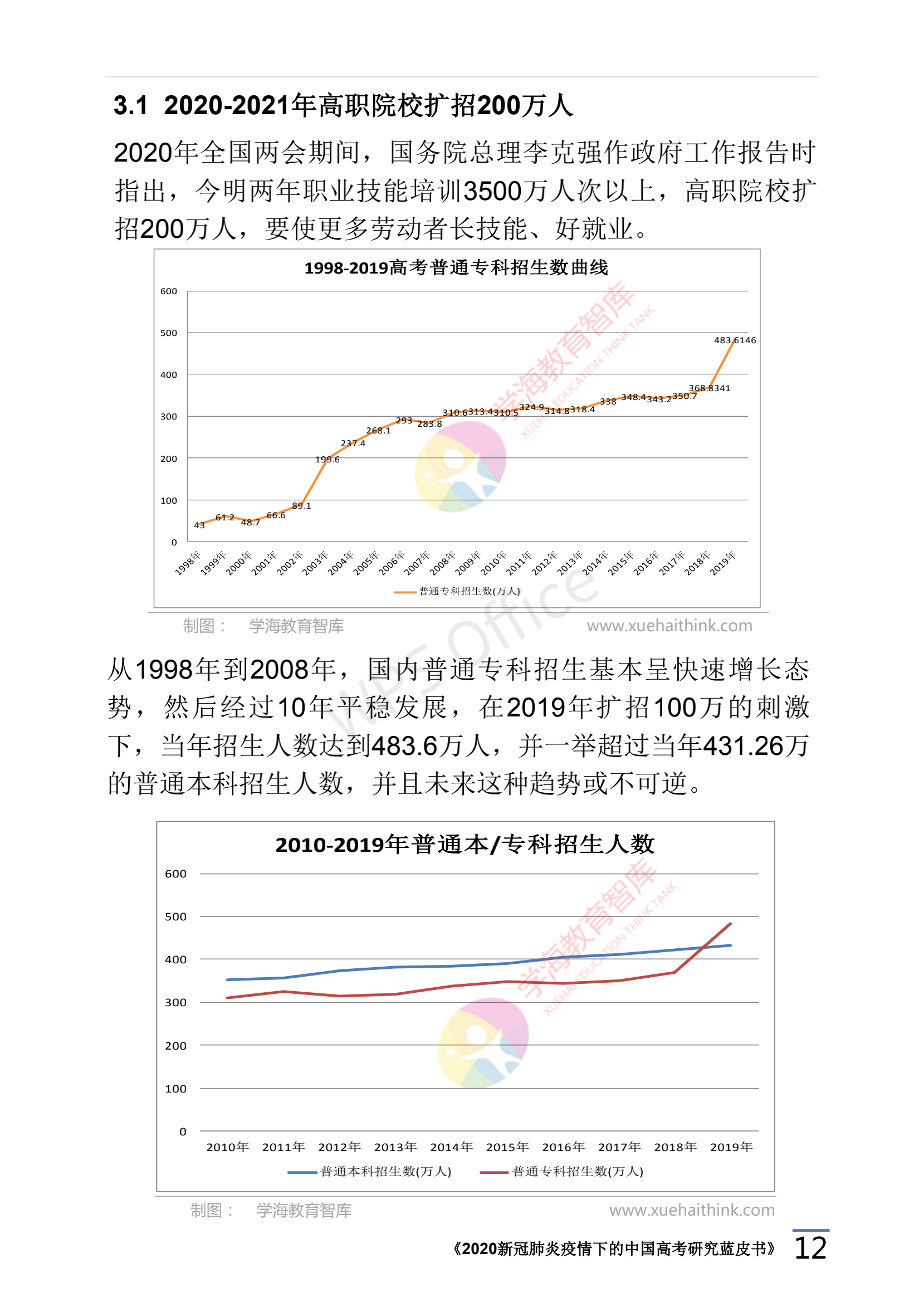 《2020高考藍(lán)皮書》:高職擴(kuò)招200萬(wàn)人,錄取率或?qū)⑹状瓮黄?0%