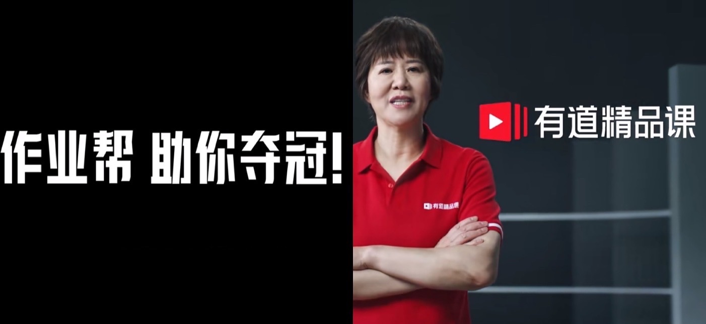 在電影院正式觀看《奪冠》之前,率先將觀眾拉進(jìn)電影場(chǎng)景的,就是來(lái)自兩家大班課品牌——作業(yè)幫以及有道精品課的院線貼片廣告。