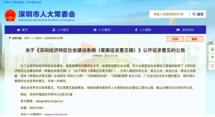 近日,深圳市人大常委會社會建設工委組織起草了《深圳經(jīng)濟特區(qū)社會建設條例(草案征求意見稿)》(以下簡稱為《草案》),共五章七十三條細則,正公開征求意見。