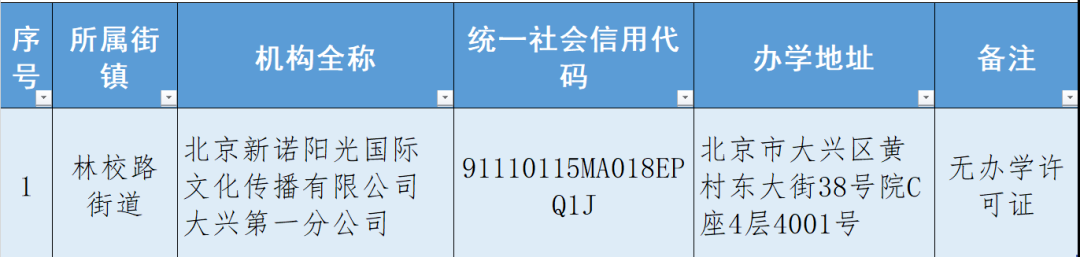 大興區(qū)第一批學(xué)科類培訓(xùn)機構(gòu)黑名單