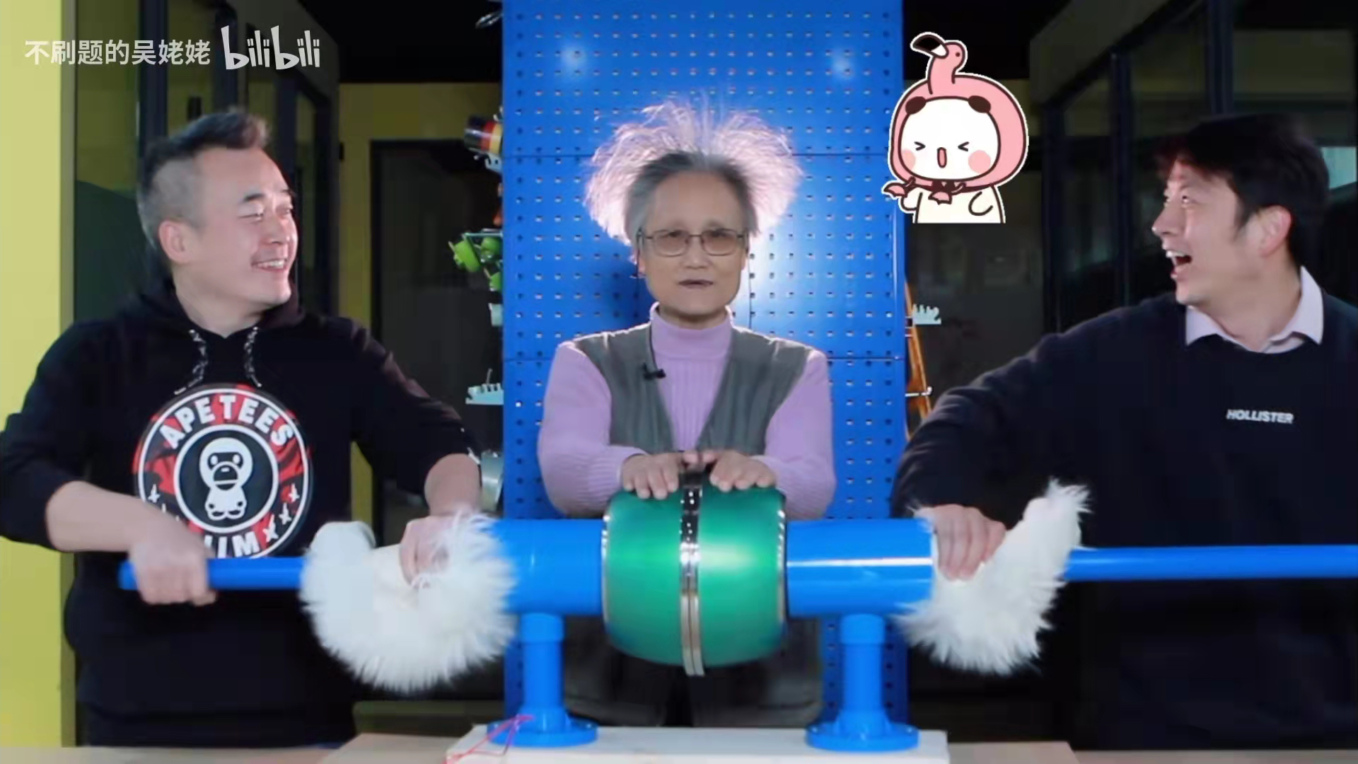 而最近獲得廣泛關(guān)注的物理奶奶的內(nèi)容中娛樂(lè)的占比較少,她常用家里常見的生活用品或特制玩具來(lái)做實(shí)驗(yàn),用實(shí)踐的方式拉近物理與觀眾之間的距離,用簡(jiǎn)潔易理解的方式解釋艱深的物理定理和現(xiàn)象。喜愛她的觀眾們親切地稱其為“吳姥姥”。