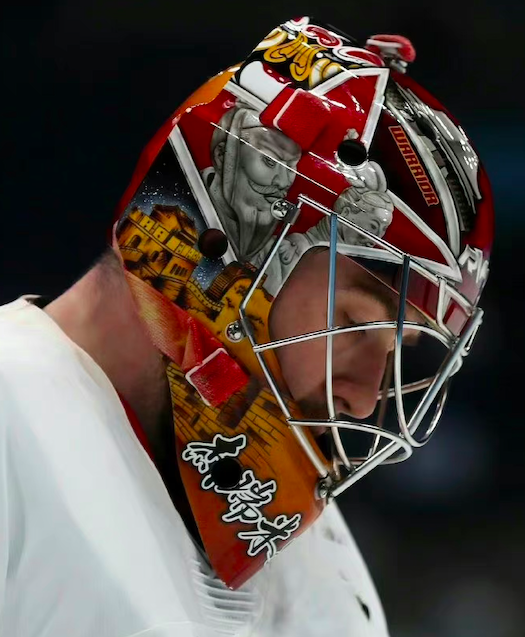 ■ 男子冰球隊(duì)門將史密斯——京劇臉譜頭盔。