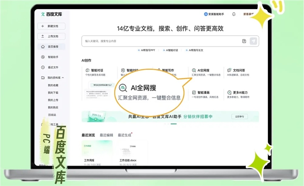 AI全網(wǎng)搜功能目前已在百度文庫PC網(wǎng)頁端上線。