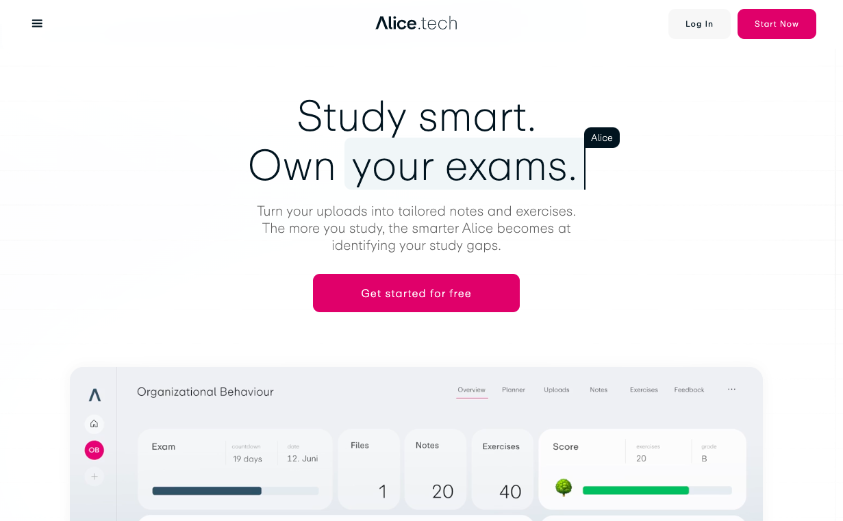 Alice將人工智能內(nèi)容生成與自適應(yīng)學(xué)習(xí)相結(jié)合,根據(jù)學(xué)生上傳的學(xué)習(xí)資料生成個(gè)性化的筆記、總結(jié)、練習(xí)測(cè)驗(yàn)(通過選擇題、抽認(rèn)卡、開放式問題、考試模擬進(jìn)行練習(xí))和輔導(dǎo)。學(xué)生可以實(shí)時(shí)了解自己的學(xué)習(xí)進(jìn)度和需要改進(jìn)的地方,并通過Alice的“與朋友一起學(xué)習(xí)”功能進(jìn)行協(xié)作、分享學(xué)習(xí)資料并保持學(xué)習(xí)動(dòng)力。