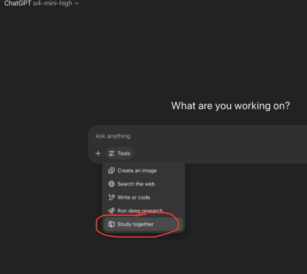 多知7月9日消息,在社交媒體X平臺(tái)上,一些ChatGPT用戶稱,發(fā)現(xiàn)名為“一起學(xué)習(xí)(Study together)”功能出現(xiàn)在可用工具下拉列表中。