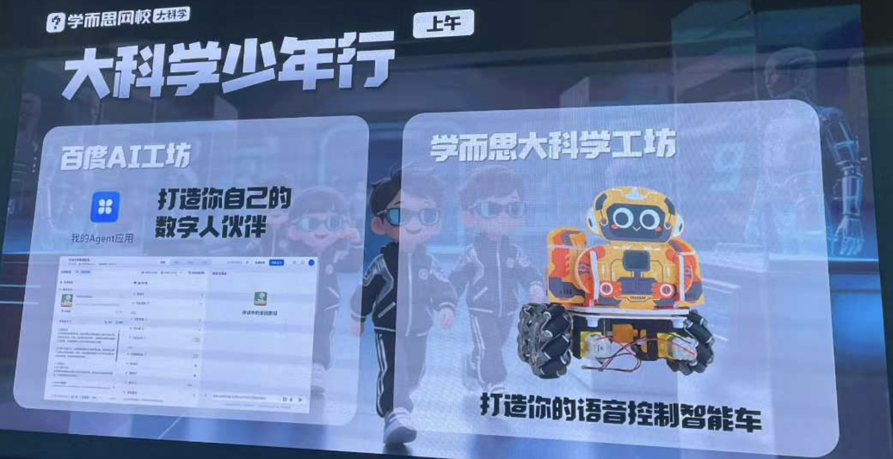 隨后,在學(xué)而思大科學(xué)工作坊,學(xué)員們一起討論AI技術(shù)的現(xiàn)狀和未來,提出了要讓AI技術(shù)沖出屏幕,改變現(xiàn)實(shí)生活的目標(biāo)。最終,孩子們用老師準(zhǔn)備的材料,每人都成功制作了一輛能夠語音控制的麥克納姆輪智慧小車,通過親身實(shí)踐加深了對科學(xué)技術(shù)和現(xiàn)實(shí)應(yīng)用的理解。
