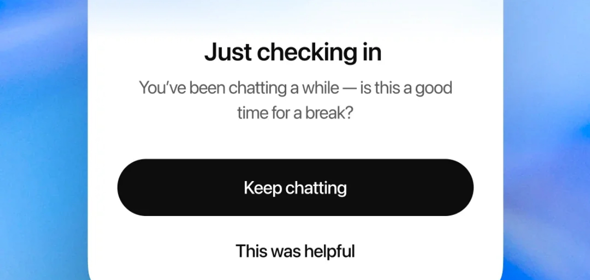 多知8月6日消息,OpenAI 公司近日發(fā)布博文稱,為了幫助用戶更健康地使用聊天機(jī)器人,8月5日開(kāi)始,正式調(diào)整 ChatGPT 的運(yùn)作方式,將向用戶提供使用時(shí)長(zhǎng)的“溫和提醒”,并建議其適當(dāng)休息。