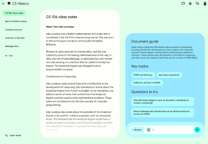 取消年齡限制旨在讓低年級學生也能使用這款產(chǎn)品,從而更好地理解課堂內(nèi)容?,F(xiàn)在,學生可以使用多種功能,比如可以提出問題、查看摘要并生成思維導圖,它甚至可以輸出視頻講解(并非以傳統(tǒng)方式制作視頻,而是創(chuàng)建帶有旁白的幻燈片)和播客風格的音頻摘要。