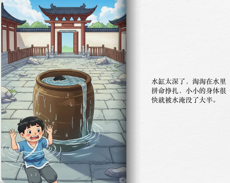 筆者實際體驗該功能時注意到,在Storybook生成的故事書里,可能存在畫面元素不統(tǒng)一的情況,比如生成的“水缸”時大時小。
