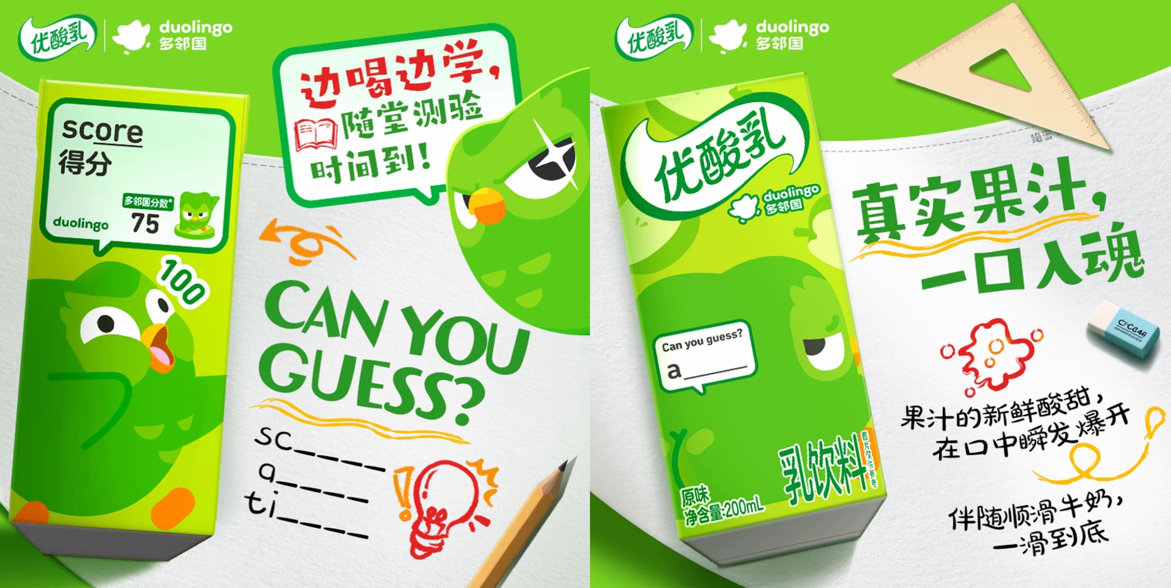 多鄰國(guó)督學(xué)文案(“你完全不學(xué)是嗎?”“你今天怎么還沒學(xué)?”)以IP角色口吻說出,結(jié)合軟飲場(chǎng)景,將“學(xué)習(xí)提醒”包裝成一種幽默、輕松、甚至帶有社交屬性的互動(dòng),大大降低了學(xué)習(xí)的壓迫感,傳遞了“學(xué)習(xí)可以很有趣”的概念。
