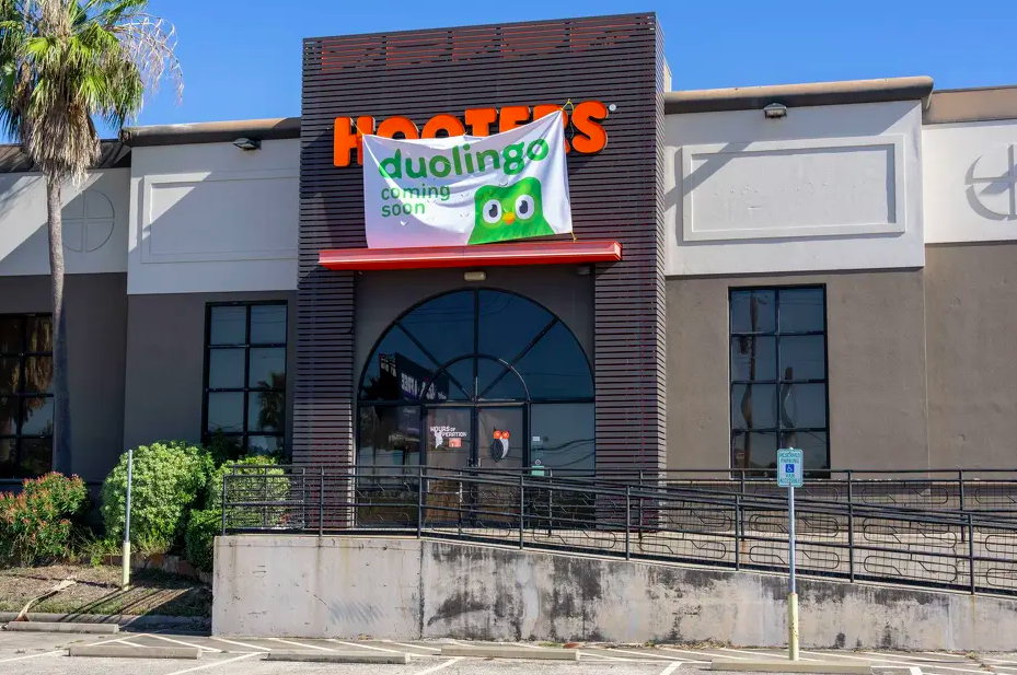 多知12月11日消息,據(jù)《休斯敦紀事報》(Houston Chronicle)消息,上周末,在美國德克薩斯州東南部的加爾維斯頓(Galveston),一家已關門的Hooters餐廳(貓頭鷹餐廳,一家連鎖西餐廳品牌,以貓頭鷹為吉祥物,今年早些時候,Hooters餐廳已關閉多家門店)外掛起了一塊“多鄰國即將開業(yè)”(duolingo coming soon)的牌子,牌子上還印有多鄰國的吉祥物多兒(Duo)。