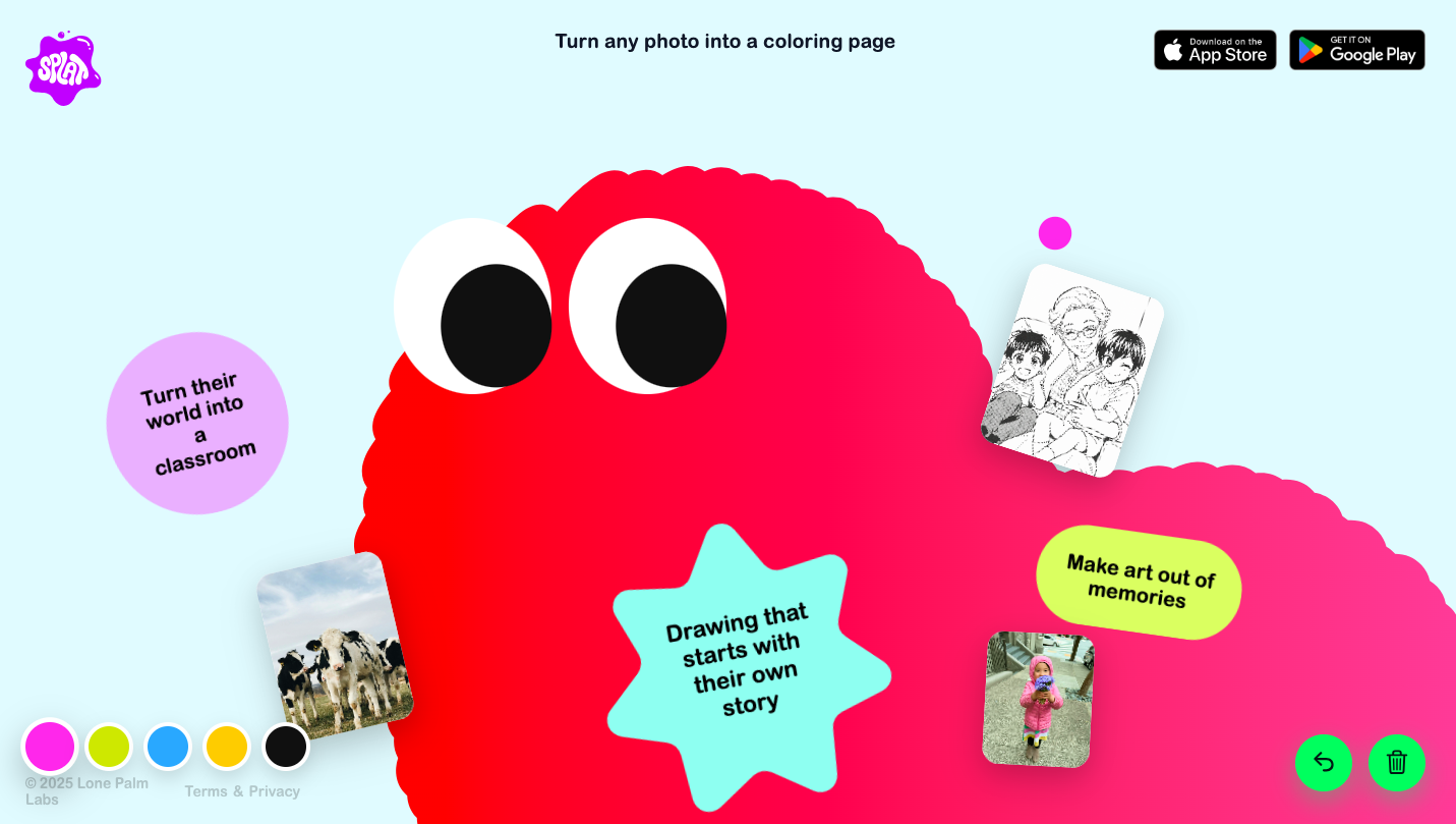 Splat的團隊此前研發(fā)了照片分享產品Retro。他們關注到,孩子們很喜歡涂色,然而,許多提供涂色打印頁面的網站往往充斥著廣告,難以瀏覽。有時,這些可打印頁面還需要支付費用,考慮到孩子們的涂鴉作品大多是一次性的,一些家長并不愿意為此付費。由此,Splat應運而生。