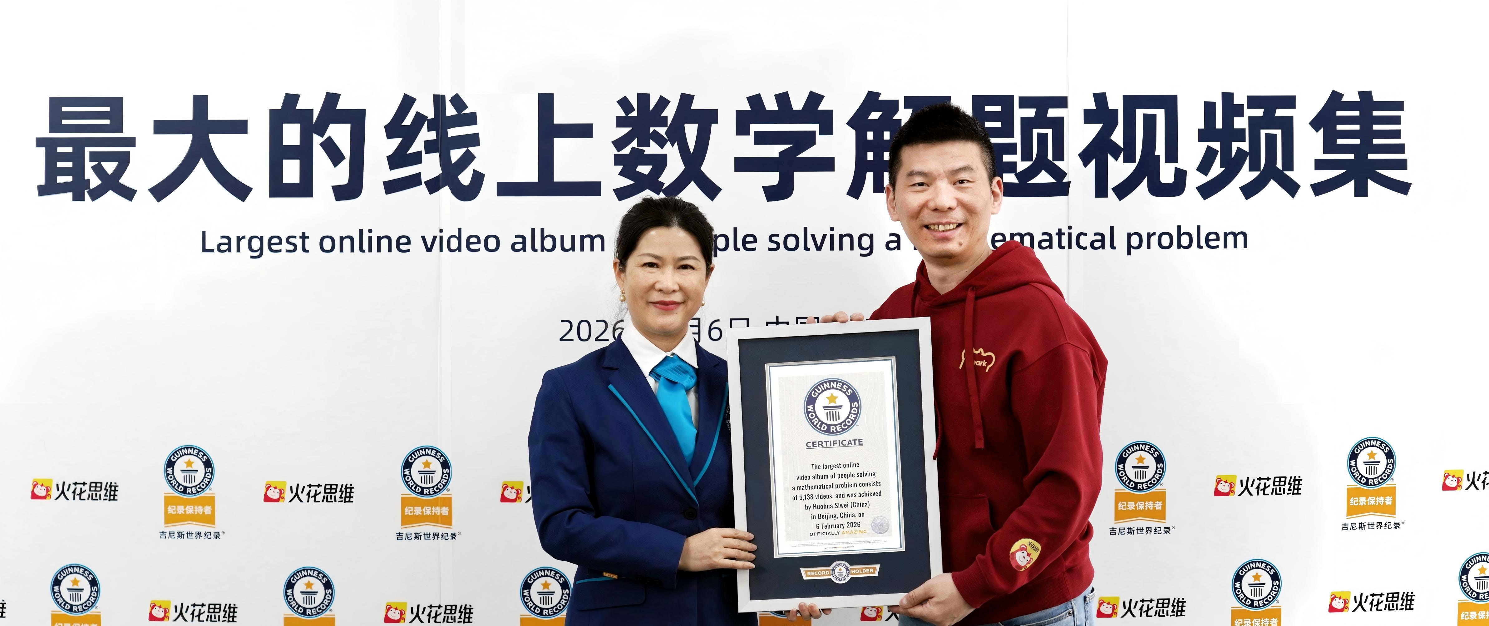 2月6日,吉尼斯世界紀(jì)錄官方認(rèn)證官羅瓊在致辭中宣布:由火花思維發(fā)起的“最大的線上數(shù)學(xué)解題視頻集”吉尼斯世界紀(jì)錄稱號挑戰(zhàn),最終確認(rèn) 5138個(gè)合格視頻,超過最低要求5000個(gè),挑戰(zhàn)成功。