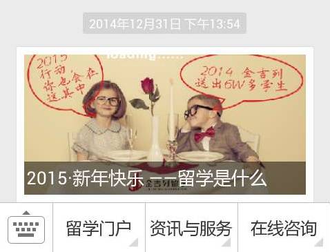 2014年的最后一天,金吉利做了“留學是什么”的主題海報,乍一看題目以為是煽情的雞湯,仔細一看發(fā)現(xiàn)是硬廣,這幾張海報并不算是絕對的年終總結(jié)性專題,勉強算是一次年終品牌推廣,比起純雞湯,在最后一天發(fā)一點品牌性建設的內(nèi)容也還是過得去的。