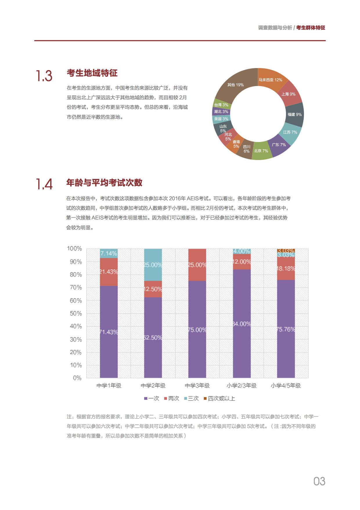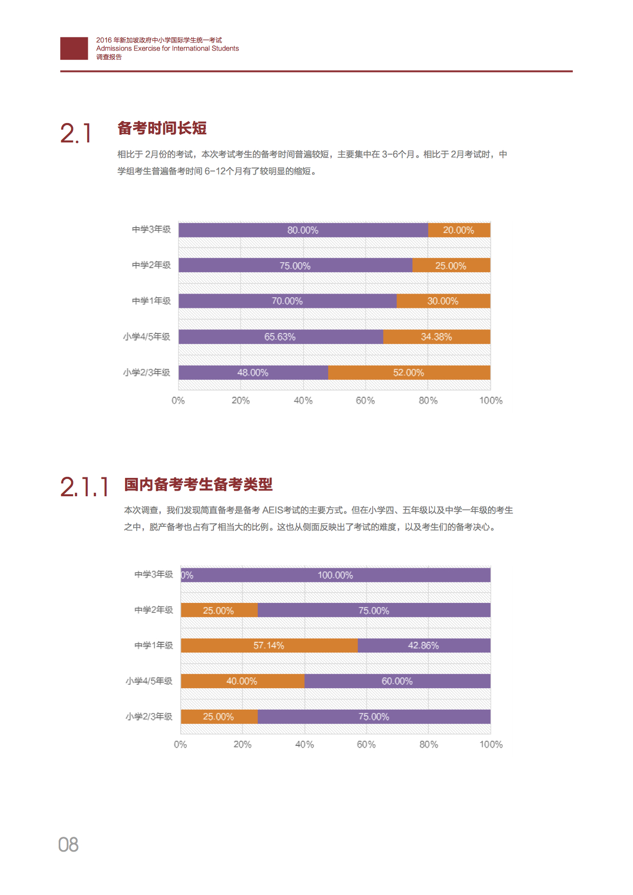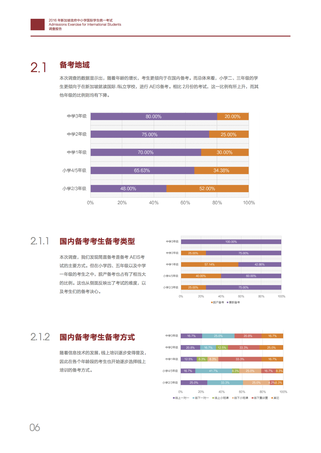 ?編者按:近日,AEIS考試網(wǎng)聯(lián)合新加坡教育網(wǎng)、新加坡教育與考試服務(wù)中心、新加坡中國學(xué)生服務(wù)中心,針對2016年9月新加坡政府中小學(xué)國際學(xué)生統(tǒng)一考試的做出了一項(xiàng)調(diào)查。報(bào)告中表示,考生開始更多的選擇線上培訓(xùn)的方式;考生備考時(shí)間縮短,主要集中在3-6月;在國內(nèi)參加培訓(xùn)的考生通過率明顯高于其他培訓(xùn)方式。低齡留學(xué)趨勢日益明顯,新加坡成為華人家長優(yōu)先考慮的國家之一。