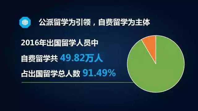 2016年出國(guó)留學(xué)人員中,自費(fèi)留學(xué)共49.82萬(wàn)人,占出國(guó)留學(xué)總?cè)藬?shù)的91.49%。2012年以來(lái),自費(fèi)留學(xué)的比重持續(xù)保持在92%左右,已初步形成公派留學(xué)為主導(dǎo),自費(fèi)留學(xué)為主體的留學(xué)工作格局。