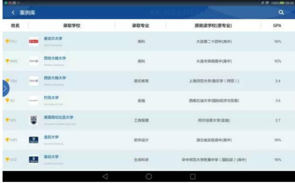 在院校庫模塊中,顧問可以通過對客戶的背景了解,在高級篩選模塊為客戶精選合適的推薦院校。
