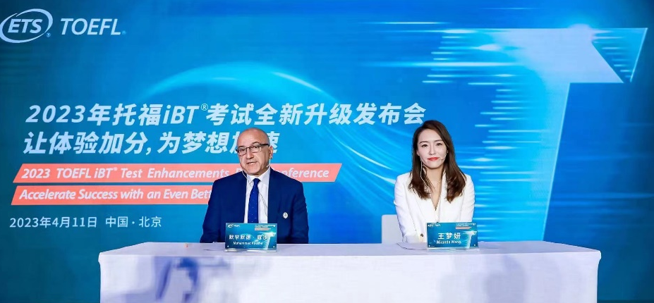 ETS全球發(fā)展與語言業(yè)務(wù)副總裁Mohammad Kousha和ETS中國區(qū)總裁王夢妍共同發(fā)布了此次托??荚嚨娜律?,并對相關(guān)調(diào)整進(jìn)行了介紹。