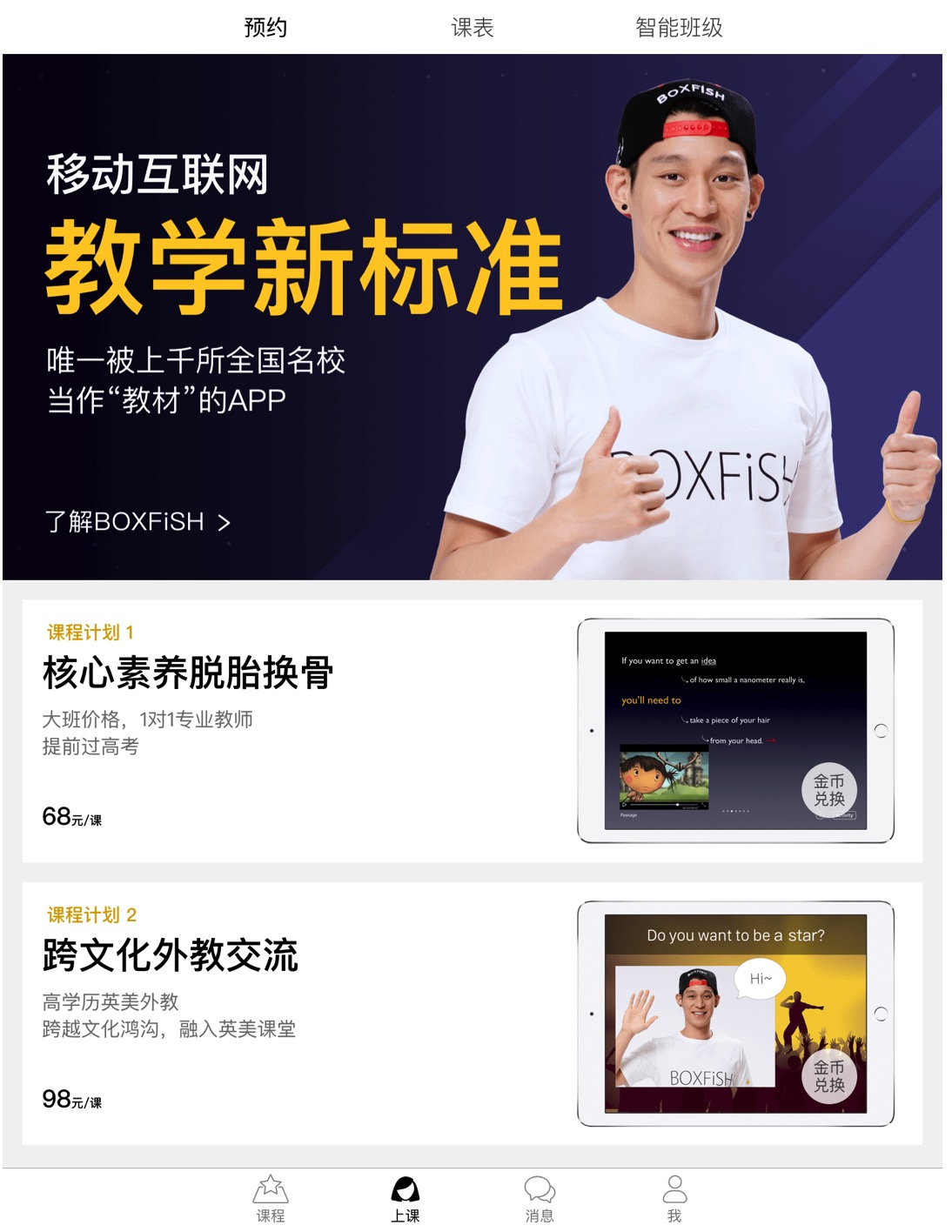 盒子魚的一節(jié)課均為25分鐘,一節(jié)外教課的單價(jià)為98元,一節(jié)中教課的單價(jià)為68元。當(dāng)學(xué)生選擇4節(jié)、8節(jié)或16節(jié)的打包課程后,可以獲得一定的優(yōu)惠。比如,打包8節(jié)的口語課,平均一節(jié)課為92元。