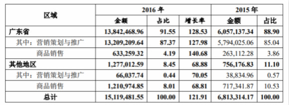 分銷(xiāo)售地區(qū)主營(yíng)業(yè)務(wù)收入: