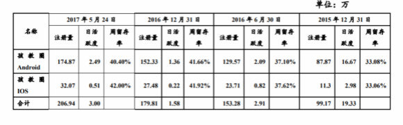 截止 2017 年 5 月 24 日,孩教圈 APP 的下載量為 1329萬(wàn)次,孩教圈 APP 注冊(cè)量、日活躍度、留存率見(jiàn)下表: