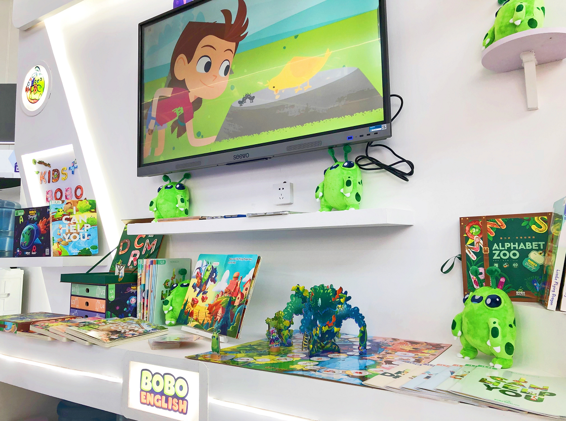 本次參展也是新東方KIDS+第一次公開亮相,重點(diǎn)展示了KIDS+旗下首個在線AI啟蒙課程產(chǎn)品BOBO英語,以及涵蓋不同主題的教育盒子等。BOBO英語是以“兒童核心素養(yǎng)能力模型”為基礎(chǔ),專為2至8歲兒童英語啟蒙打造的在線AI互動課程。課程采用卡通IP陪伴式教學(xué),動畫游戲相結(jié)合,通過完整的故事和生活化的場景讓孩子“沉浸式”學(xué)習(xí),全面提升學(xué)習(xí)興趣、專注力,塑造良好品格。