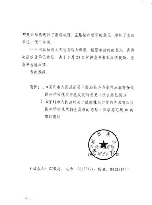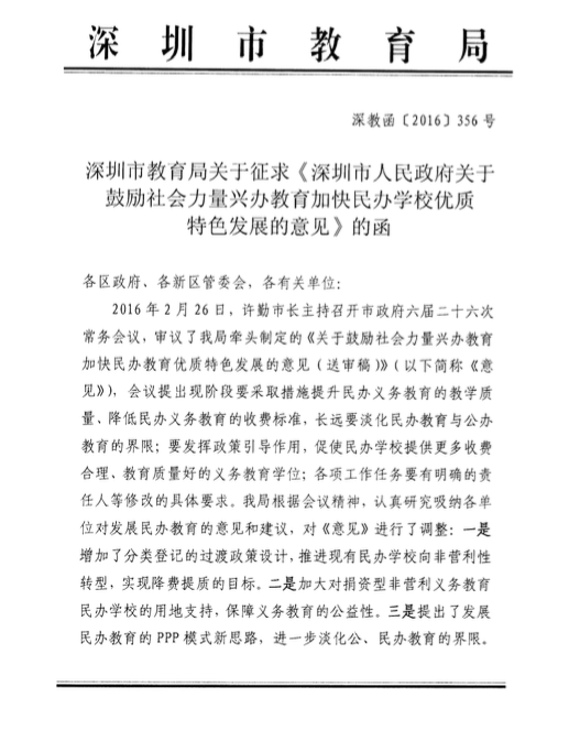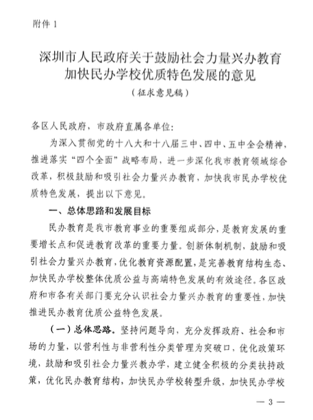 多知網(wǎng)5月28日消息,近日,深圳市政府發(fā)布了《關(guān)于鼓勵(lì)社會(huì)力量興辦教育加快民辦學(xué)校優(yōu)質(zhì)特色發(fā)展的意見(jiàn)》征求意見(jiàn)稿。