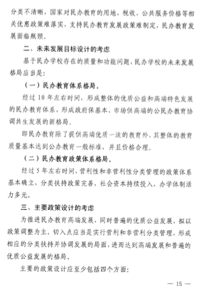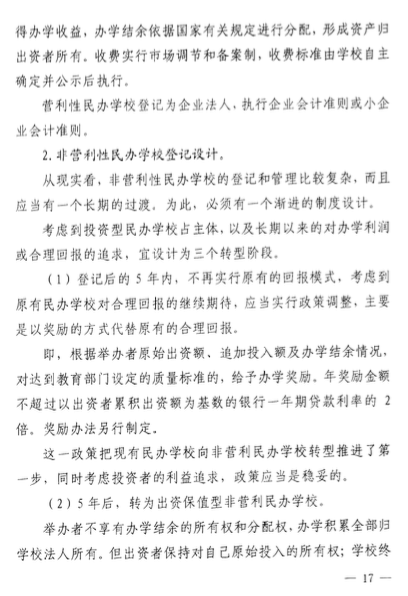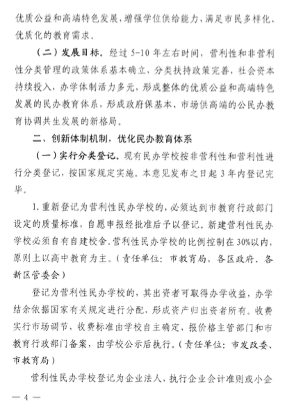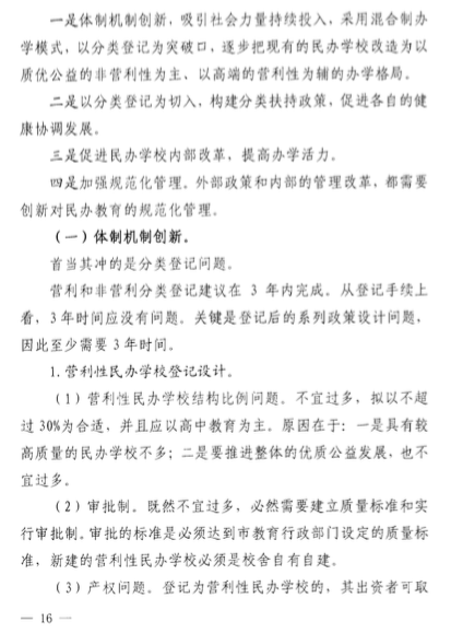 此外,該意見(jiàn)發(fā)布之日起,現(xiàn)有民辦學(xué)校按非營(yíng)利性和營(yíng)利性進(jìn)行分類(lèi)登記,3年內(nèi)登記完畢。其中,營(yíng)利性民辦學(xué)校占民辦學(xué)??傮w的30%,并且應(yīng)以高中教育為主。