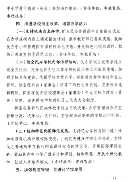 鼓勵(lì)民辦中小學(xué)開(kāi)設(shè)多語(yǔ)種課程、特色課程,開(kāi)展小班化教學(xué)。