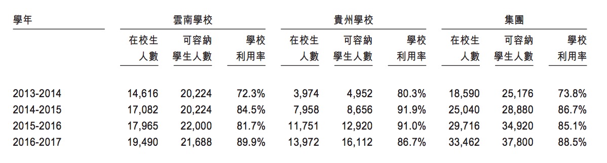 截至2016年12月31日,云南學(xué)校和貴州學(xué)校共有3.35萬名在校生,學(xué)校利用率為88.5%,2015年和2014年在校生分別為2.97萬名和2.50萬名,學(xué)校利用率分別為85.1%和86.7%。