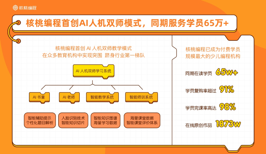 截止2019年8月,核桃編程已經(jīng)成為付費(fèi)學(xué)員規(guī)模最大的少兒編程教育機(jī)構(gòu),幫助超過(guò)65萬(wàn)名孩子收獲學(xué)習(xí)興趣。