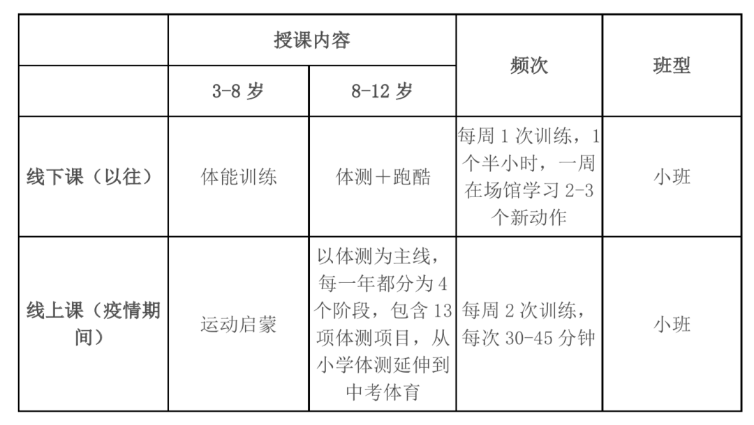“創(chuàng)造家長(zhǎng)的需求是不可能的。”孩子的時(shí)間有限,體能課要擠進(jìn)孩子的時(shí)間里,“要考慮就是線(xiàn)上如何能解決家長(zhǎng)的需求,而不是說(shuō)你覺(jué)得現(xiàn)在教什么合適。”