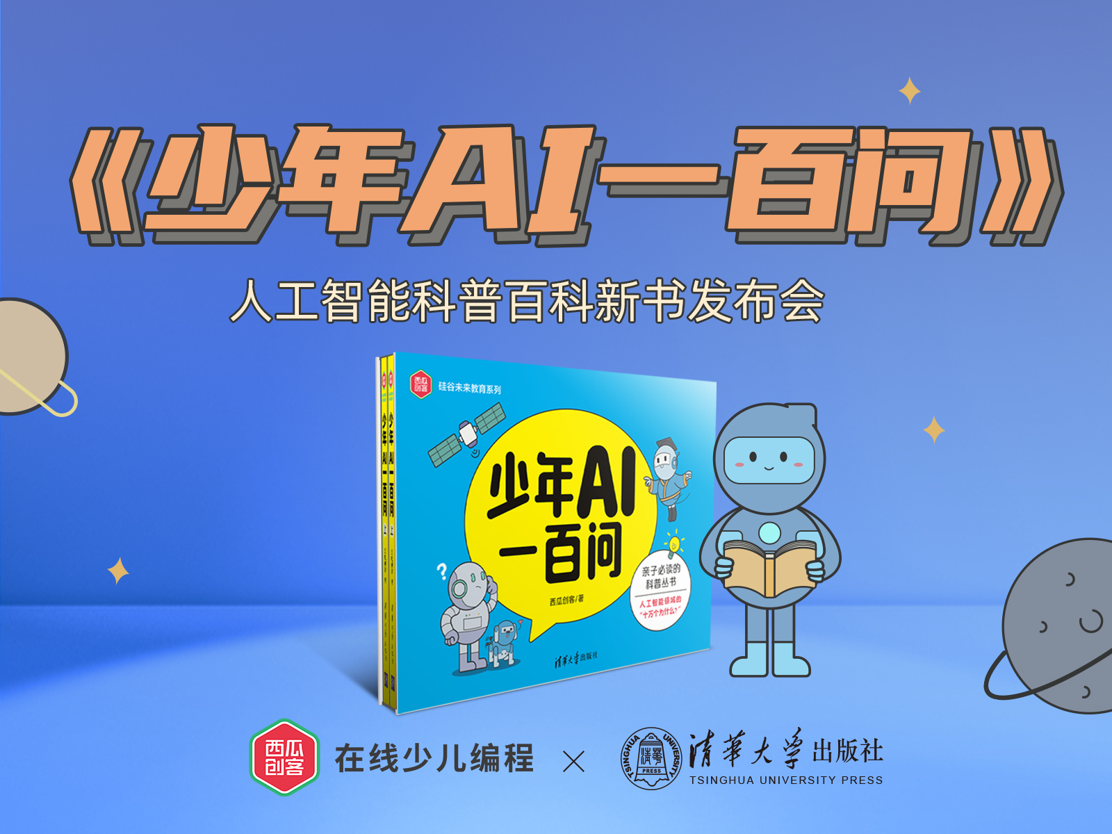 多知網(wǎng)9月23日消息,昨日,在線少兒編程企業(yè)西瓜創(chuàng)客與清華大學(xué)聯(lián)合編著的《少年AI一百問》舉行了新書發(fā)布會。