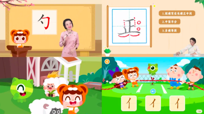 課程開(kāi)始前,老師會(huì)先教授正確的坐姿和寫(xiě)字姿勢(shì),接著再進(jìn)入課程的各個(gè)板塊,包括「趣味故事」、「寫(xiě)字AI課堂」、「書(shū)寫(xiě)小明星」、「學(xué)習(xí)報(bào)告」等。還有配套的專(zhuān)屬教具盒子。