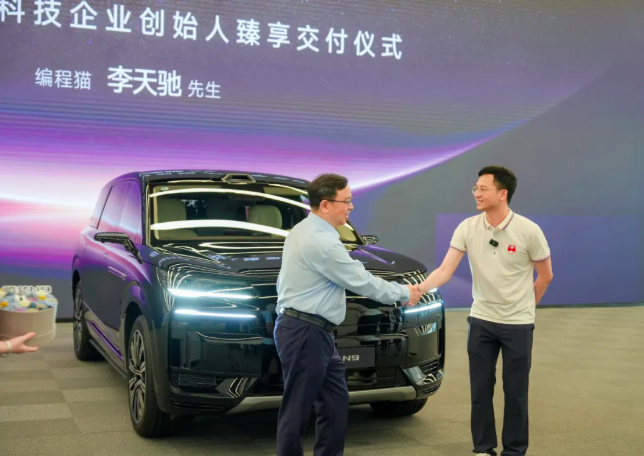 前幾天,在深圳比亞迪全球總部,比亞迪集團(tuán)總裁王傳福將一輛嶄新的比亞迪汽車騰勢(shì)N9交付給點(diǎn)貓科技(編程貓的母公司)創(chuàng)始人李天馳。