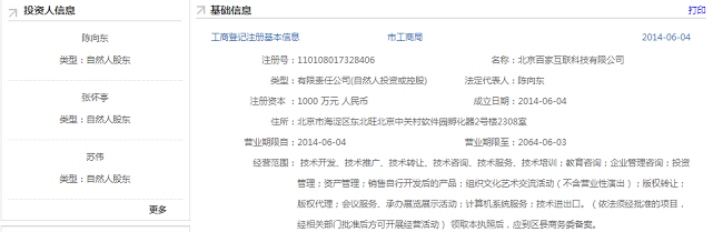 從工商信息來看,團(tuán)隊(duì)搭建方面,陳向東也找到了合適的技術(shù)合伙人——原百度鳳巢高級產(chǎn)品經(jīng)理、商務(wù)搜索部高級工程師張懷亭。