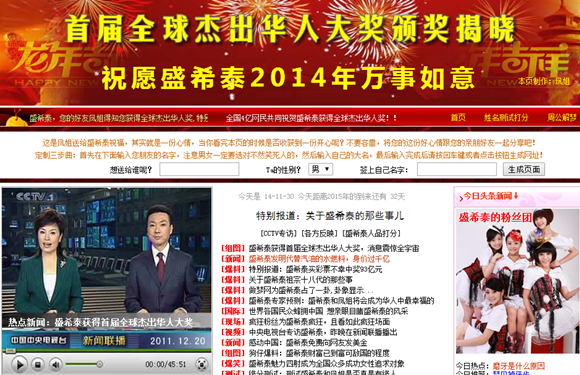 最后,查找盛希泰資料時,發(fā)現(xiàn)一則“盛希泰獲得首屆全球杰出華人大獎”的消息,點開這樣一個奇葩網站,不知與老俞找的老盛有無瓜葛。