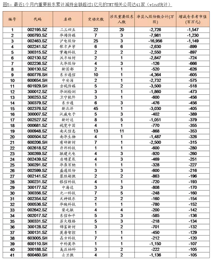 “互聯(lián)網(wǎng)+”對不少行業(yè)而言,帶來的是替換的變量、縮減的存量?;ヂ?lián)網(wǎng)的產(chǎn)業(yè)價值在于通過提升信息的公平有效,一定程度上消除企業(yè)的尋租、紅利、溢價等不效率,從而提升社會的整體效率。由于A股互聯(lián)網(wǎng)真正龍頭標(biāo)的稀缺、短期難以驗證的群體心理盛行,偽成長公司被瘋狂追捧,這符合我們在《三次方》報告里投資第一階段搶籌碼的邏輯。然而,當(dāng)越來越多只有概念而無實質(zhì)競爭力的標(biāo)的,開始輕易觸及百億美金,更名等怪誕的現(xiàn)象不斷升級(圖3),選擇高位減持的企業(yè)逐步增多(圖4),中長期的再融資撮合難度開始提升,我們認(rèn)為“偽成長”的泡沫在加速堆積,在對于真正跑出賽道的龍頭,泡沫并不大。