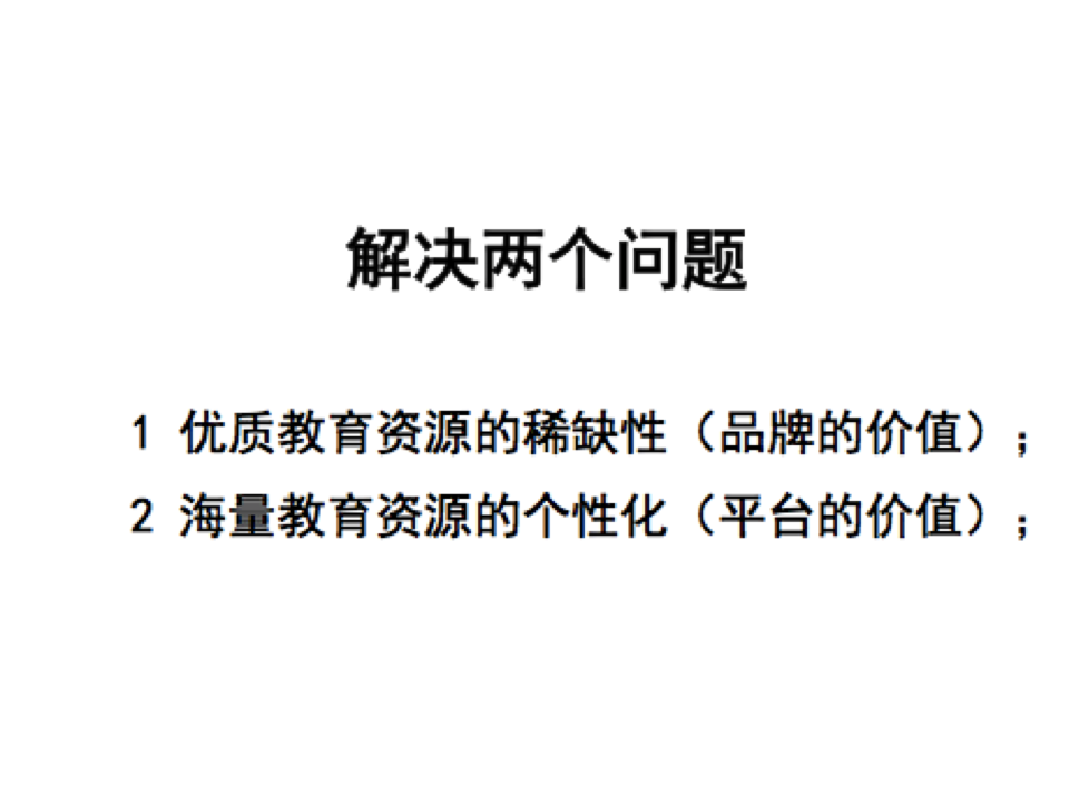 第二個問題,教育的核心本質(zhì)是優(yōu)秀教育資源的不可復制,這件事情是核心本質(zhì)。即使對于學而思提供的所謂標準質(zhì)控,好老師是可遇而不可求,好老師班你是報不上的,公立學校也是一樣。在需求和供給教育資源之間的矛盾永遠存在,優(yōu)秀的老師在定點定時,定場合的情況下,他的時間如何通過其他的方式能夠有效放大并且服務(wù)更多的學生。這件事情是我們思考的問題。