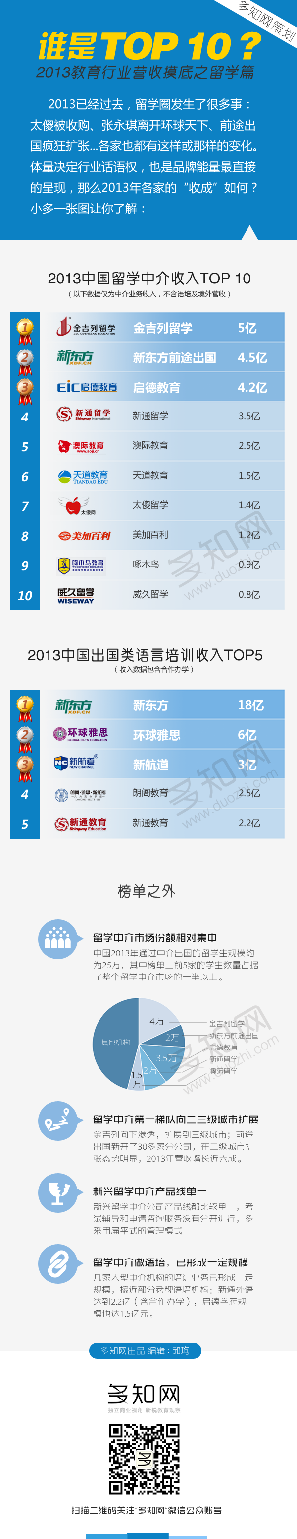 2013已經(jīng)過去,留學圈發(fā)生了很多事:太傻被收購、張永琪離開環(huán)球天下、前途出國瘋狂擴張…各家也都有這樣或那樣的變化。體量決定行業(yè)話語權(quán),也是品牌能量最直接的呈現(xiàn),那么2013年各家的“收成”如何?小多一張圖讓你了解。