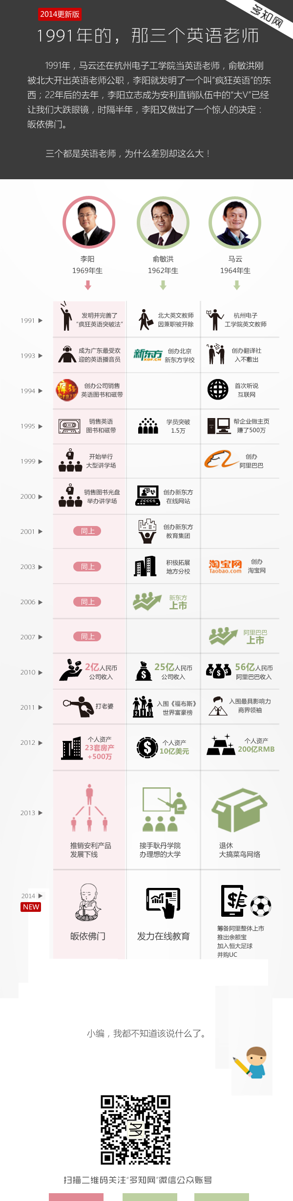 1991年,馬云還在杭州電子工學(xué)院當英語老師,俞敏洪剛剛被北大開除英語老師的公職,李陽就發(fā)明了一個叫“瘋狂英語”的東西;二十二年后的今天,馬云在籌備阿里整體上市,俞敏洪在發(fā)力在線教育,李陽又做出了一個驚人的決定:皈依佛門。