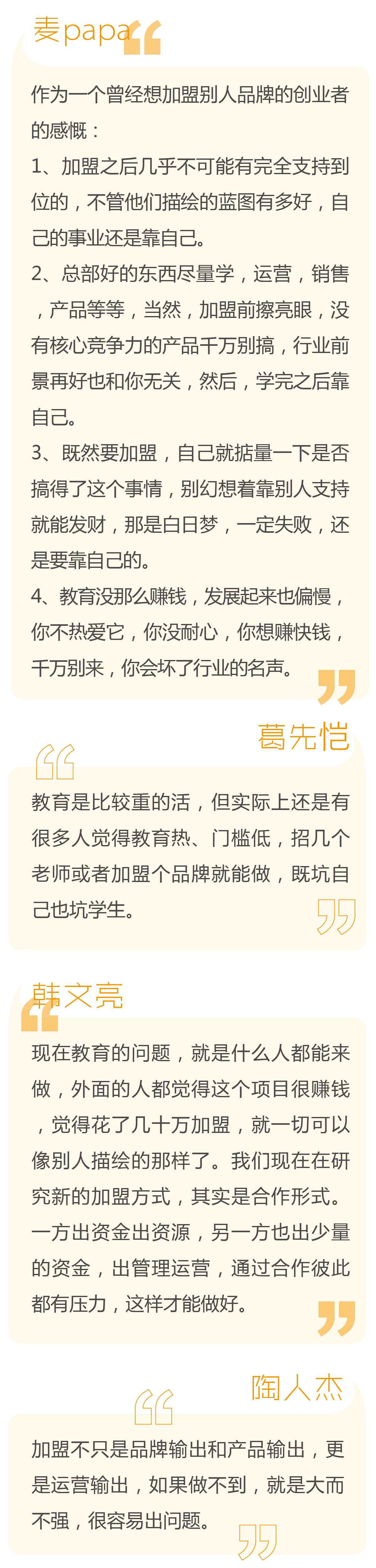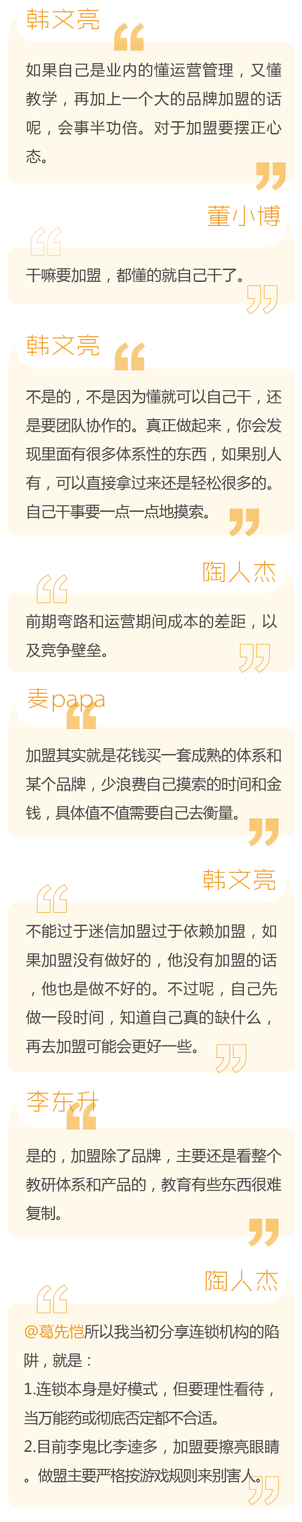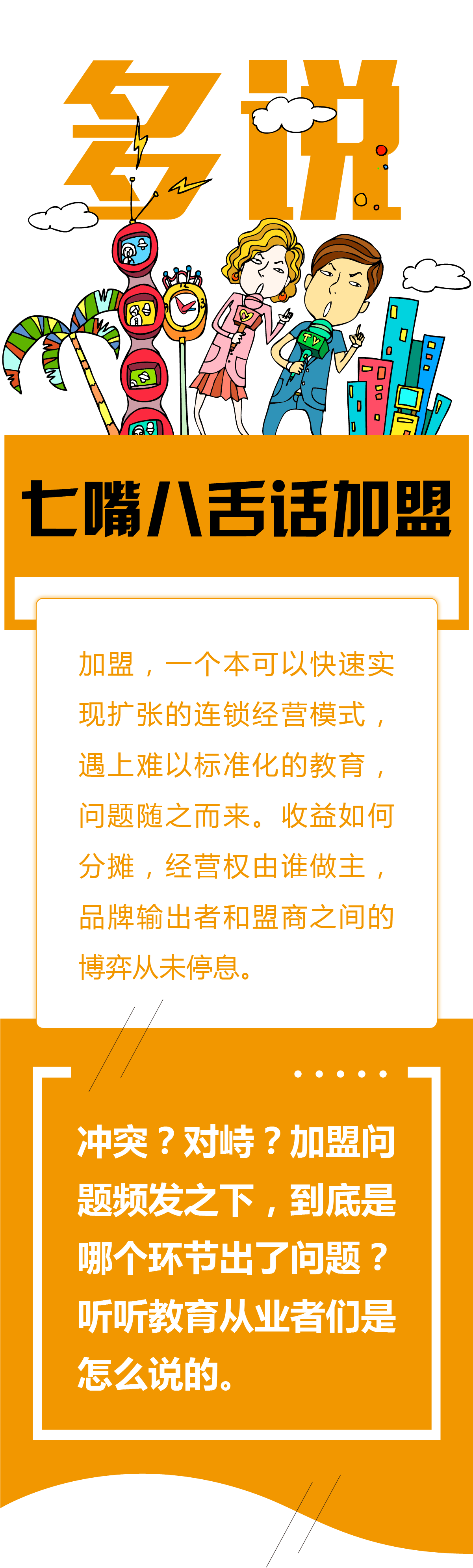 近期,一場(chǎng)加盟風(fēng)波讓培訓(xùn)機(jī)構(gòu)的加盟問題再次受到關(guān)注。對(duì)于加盟這個(gè)歷史難題,教育從業(yè)者們展開了激烈討論。多知網(wǎng)新欄目【多說】第一期就來聽他們聊聊加盟這些事兒。?