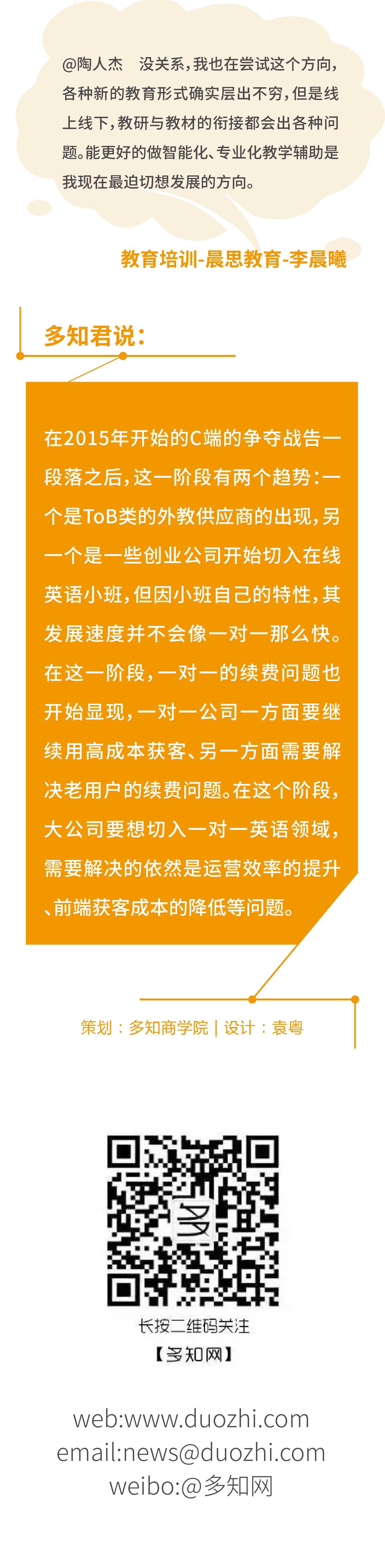 多知商學(xué)院創(chuàng)辦于2017年,面向教育行業(yè)創(chuàng)業(yè)者、從業(yè)者、投資人,課程體系涵蓋系統(tǒng)課、專題課、大講堂,旨在連接行業(yè)頭部,直擊深度思考,提升商業(yè)認知,催生自我迭代。